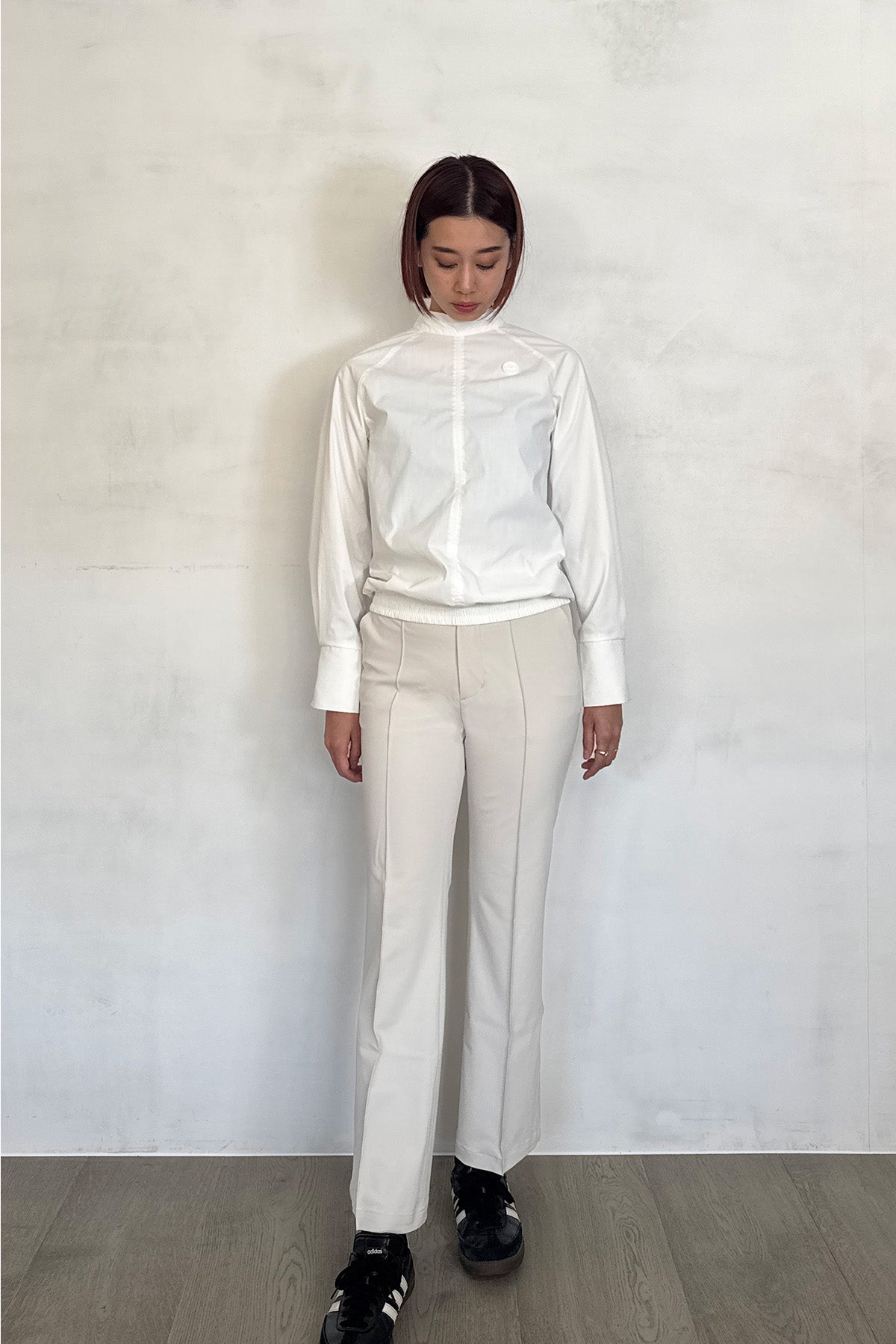 様々な結び方で楽しめるタイデザインが特徴のプルオーバーシャツが登場。リサイクルポリエステル生地を使用しており、コットンライクな風合いで綿に比べしわになり難く、環境配慮とファッション性を兼ね備えた素材を採用致しました。袖口の開きはボタンで調整が可能。ゴルフウェアとしても私服としても合わせ易いデザインで"二度楽しい"一着となりました。